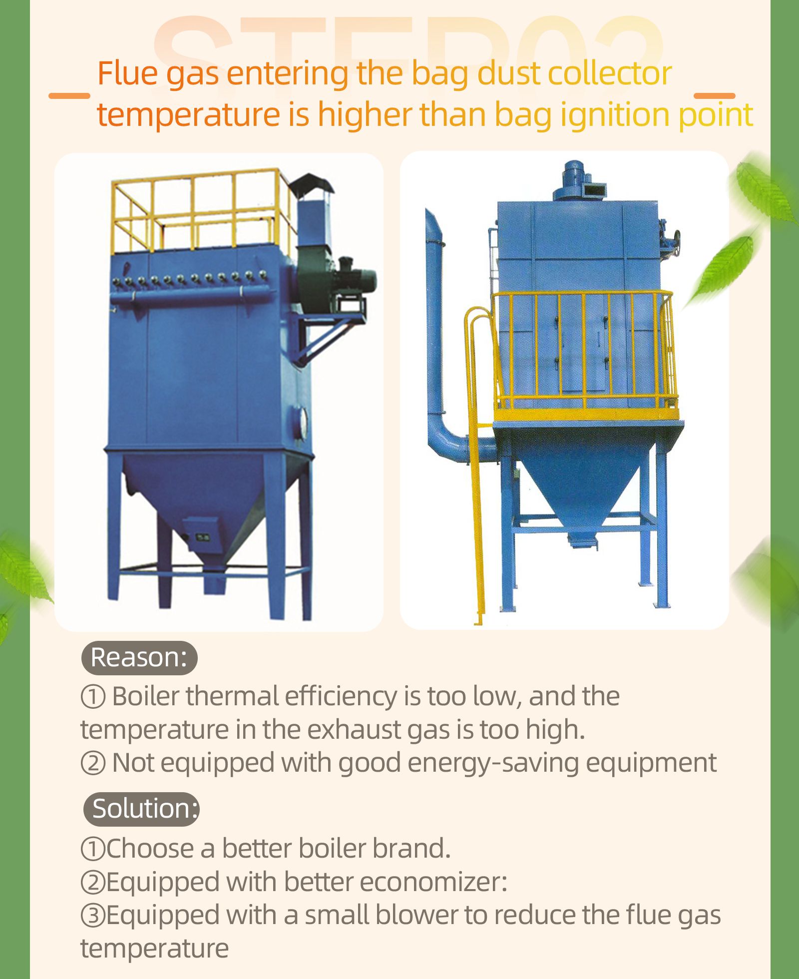 ③Improper fuel selection: The fuel that takes a long time to burn out will generate small particles of fuel that are burning during the combustion process, and it is easy to follow the flue gas into the bag dust collector.